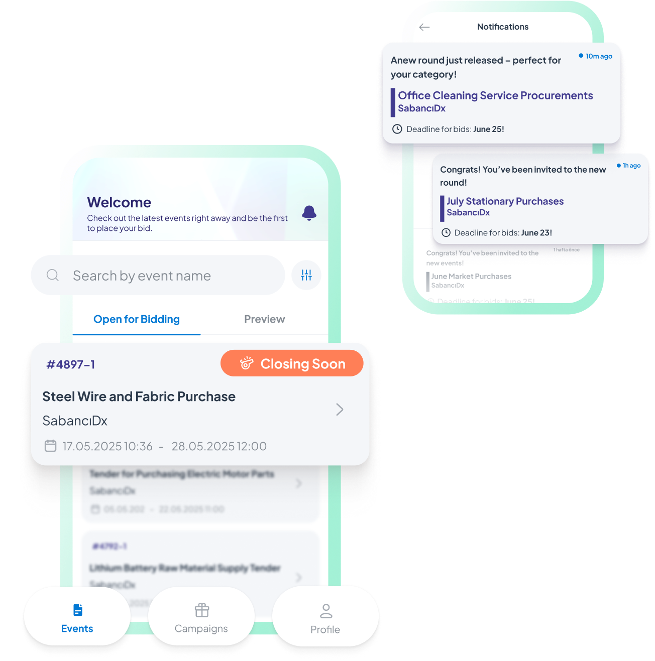 Be the first to know about e-auctions with PratisPro Mobile, seize the opportunities.